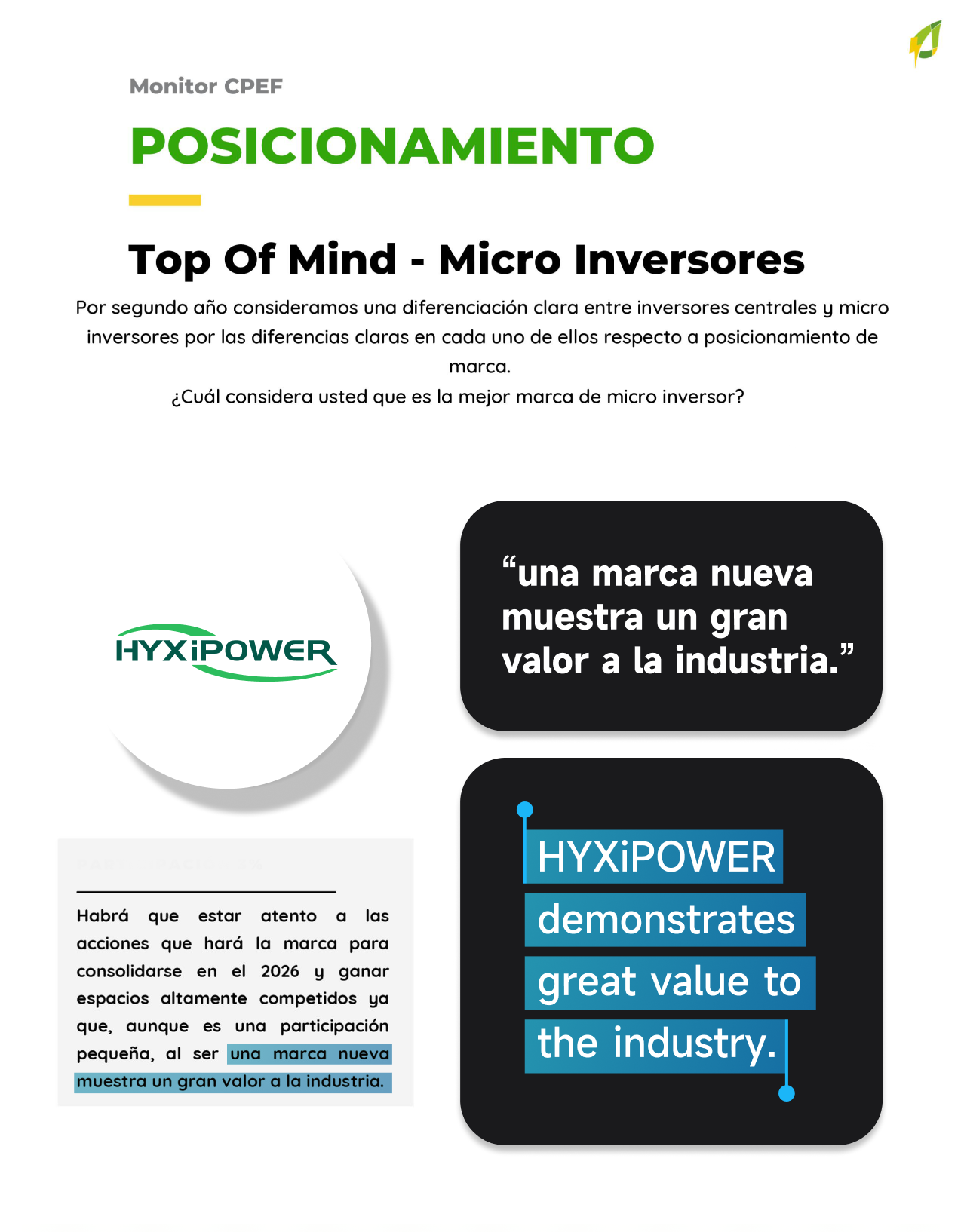 Recently, Mexico’s photovoltaic industry barometer Solar Monitor released its influential 2025 annual report, in which HYXiPOWER earned a strong position among the Top Five Microinverter Brands in the country—becoming one of the most favored new-energy brands in the local market. This recognition not only highlights HYXiPOWER’s technological leadership in the microinverter sector, but also further reinforces its brand influence and product value in Mexico and global markets.